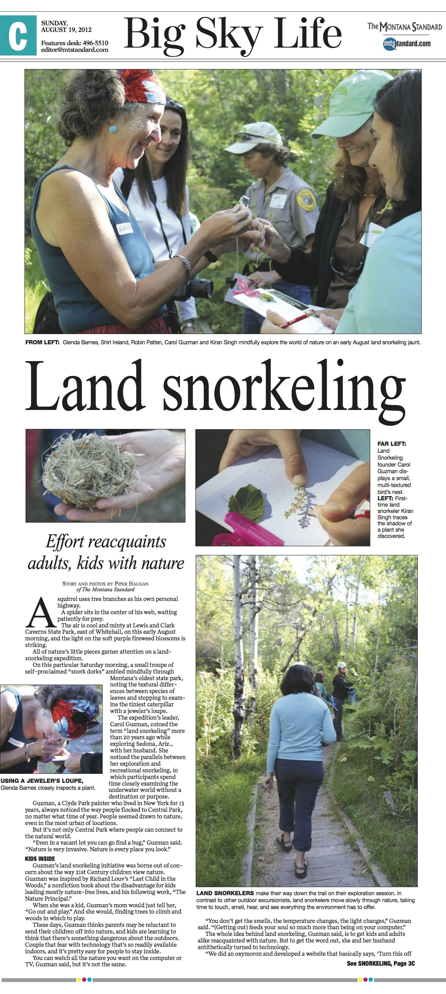 Land snorkeling is taking the time to savor aspects of nature we ordinarily don’t see or pay attention to. Land snorkelers wander through nature with no real destination. Share Your Landsnorkeling Story Snork Dorks 12/2/12 Snork Dorks 12/2/12 Whitney Tilt: Snork Dork in Training Read More Articles 10/26/12 Articles 10/26/12 Finding Zen in a Piece of Nature Read More Community Posts 8/27/12 Community Posts 8/27/12 Slow Hikers Make Great Landsnorkelers! Read More Articles 8/27/12 Articles 8/27/12 Landsnorkeling Featured in Butte, MT Newspaper Read More Community Posts 8/16/12 Community Posts 8/16/12 The California Forest Floor... Read More Articles 5/22/12 Articles 5/22/12 Great NY Times Article about Insects & Landsnorkeling... Read More Articles 4/29/12 Articles 4/29/12 Landsnorkel Anywhere - any patch of earth... Read More Community Posts 4/29/12 Community Posts 4/29/12 Land Snorkeling for Fossils in Canada Read More Community Posts 4/10/12 Community Posts 4/10/12 Ant Hills at Work... Read More Newer Posts Older Posts